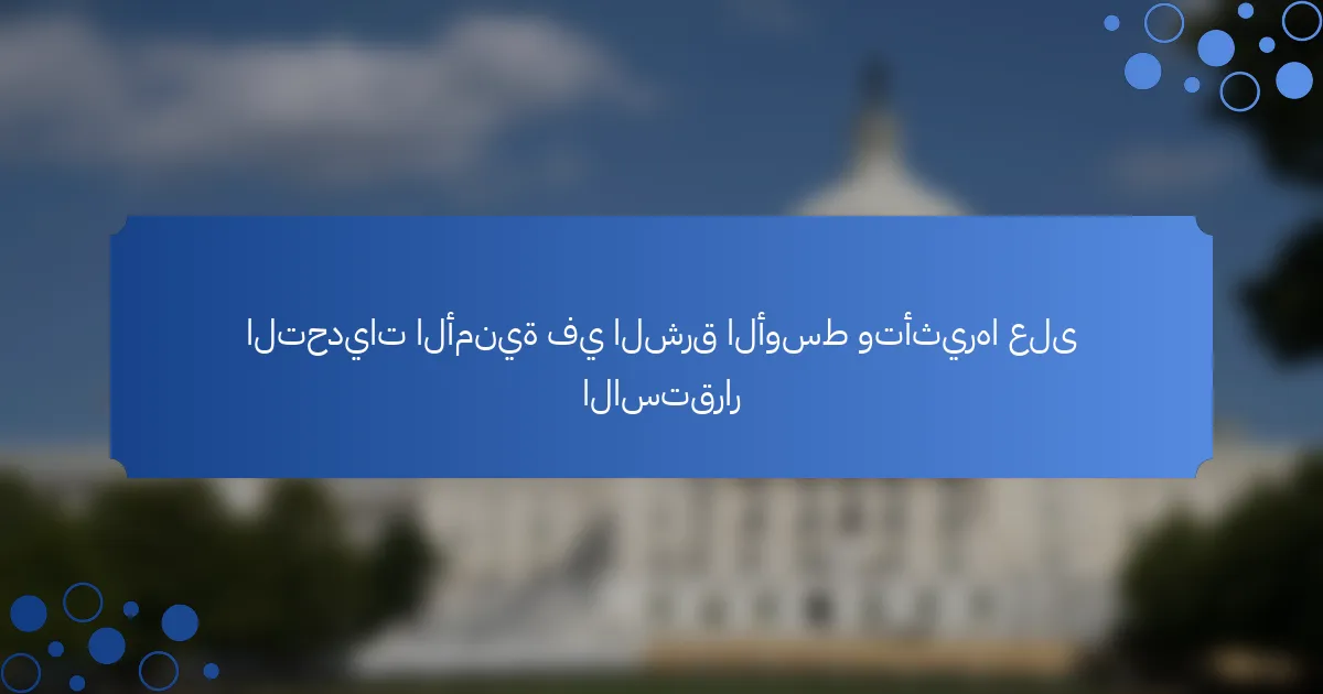 The article focuses on the security challenges in the Middle East and their impact on stability. Key issues include armed conflicts in countries like Syria and Yemen, the rise of terrorism with groups such as ISIS and Al-Qaeda, and the prevalence of religious extremism. These factors contribute to infrastructure destruction, increased displacement, and heightened violence, affecting both local communities and broader regional stability. Additionally, political tensions, particularly between Iran and Saudi Arabia, exacerbate these challenges, leading to economic instability, reduced investments, and deteriorating living conditions. The article highlights the significant repercussions of these security threats on social structures, mental health, and overall quality of life in the region.