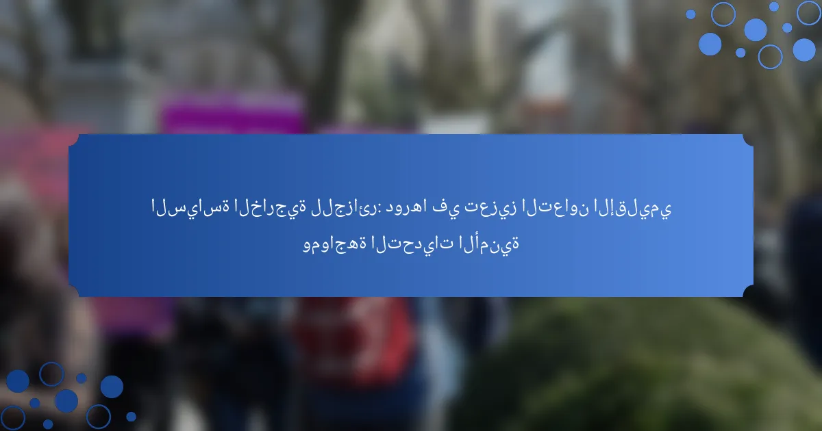 كيف تسعى الجزائر لتعزيز الأمن الإقليمي من خلال سياستها الخارجية؟