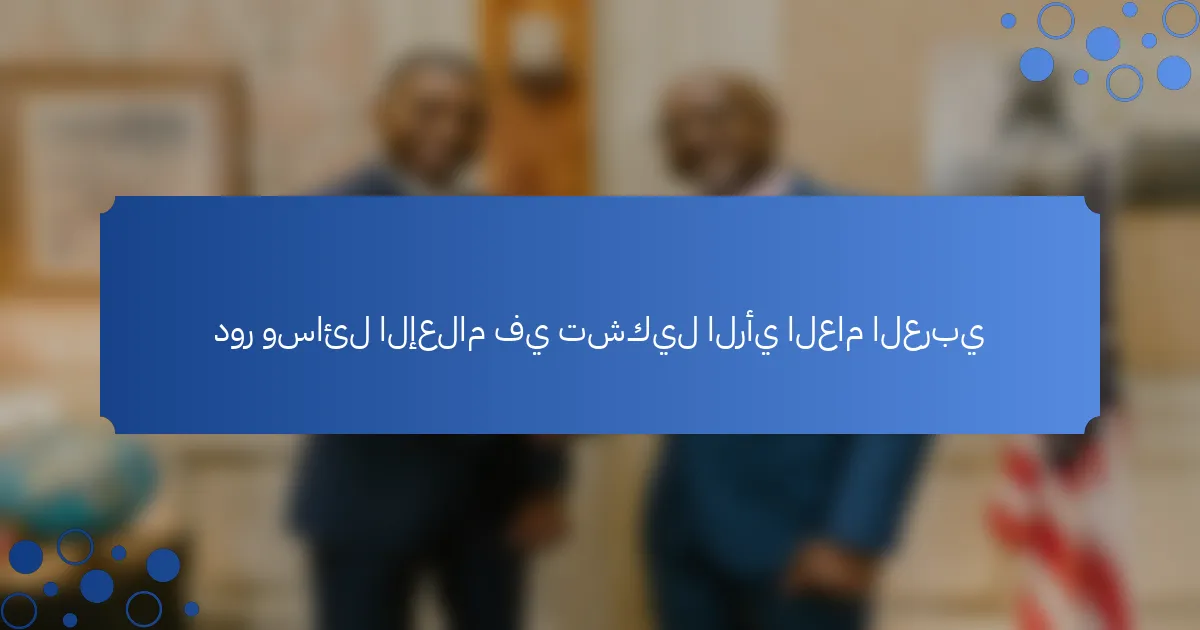 The article examines the role of media in shaping public opinion in the Arab world. It highlights how various media platforms, including television, newspapers, and online sites, provide critical information that influences people’s views on social and political issues. A study from Cairo University indicates that 75% of Arab youth rely on media as their primary information source. The article also discusses the interaction between media and current events, emphasizing the impact of social media in disseminating information quickly. Furthermore, it addresses the importance of content quality, transparency, and the need for effective strategies to enhance media’s credibility and diversity of opinions in public discourse.